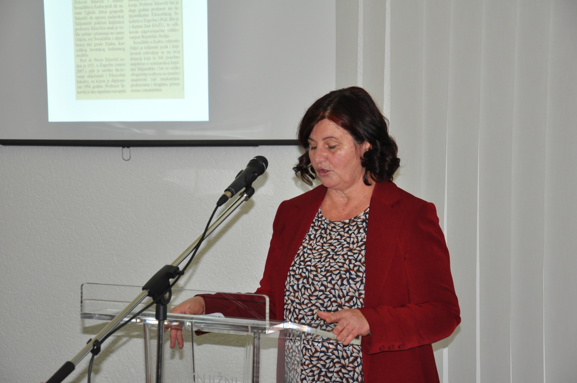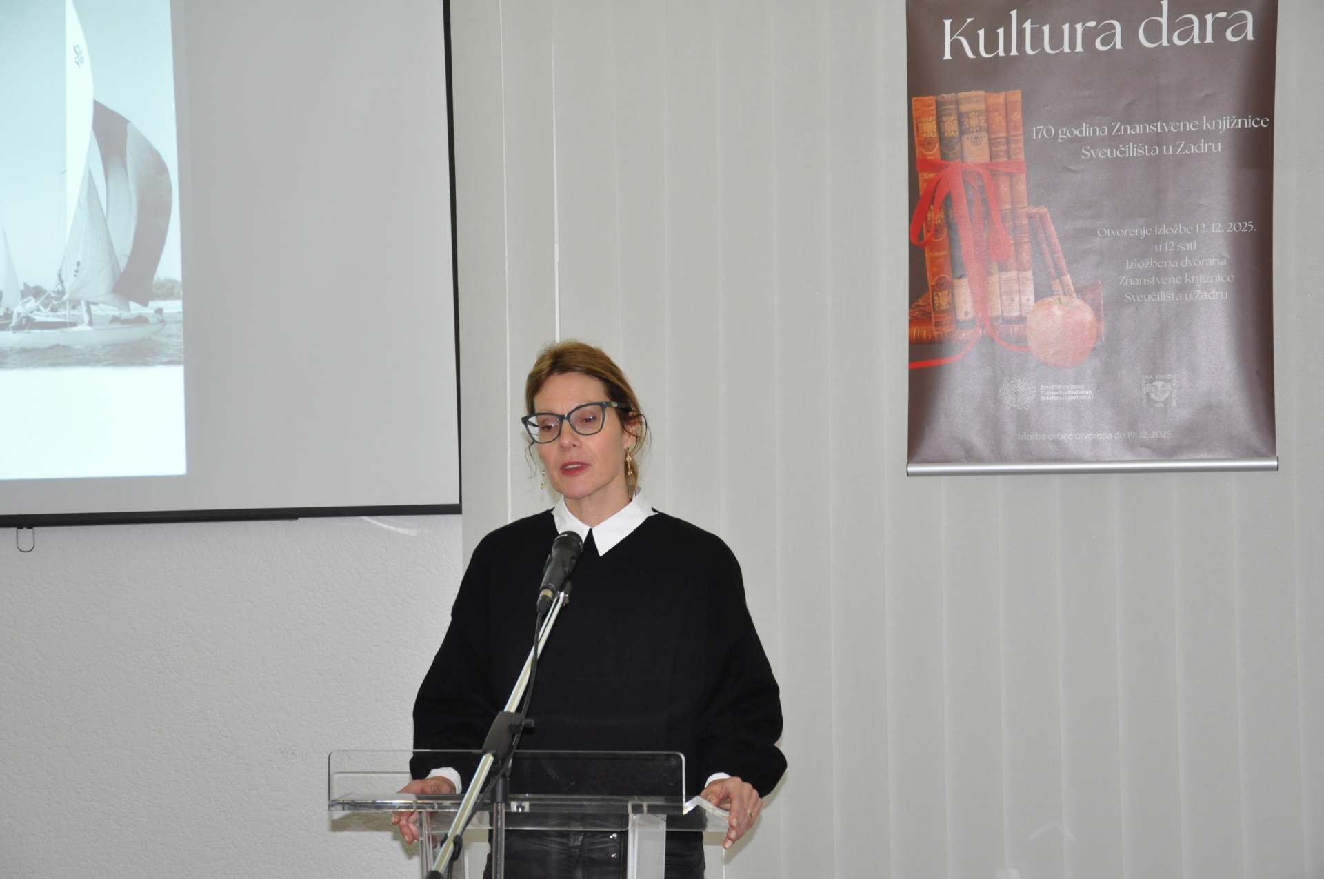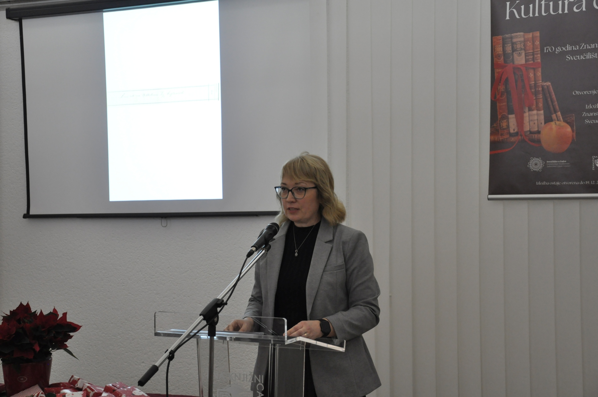 Ostale fotogalerije 10.12.2025.: književna večer "POEZIJA U PRIJEVODU"3.12.2025.: predavanje "MENTALNO ZDRAVLJE MLADIH U 21. STOLJEĆU"25.11.2025.: otvorenje 32. izložbe "IZDAVAŠTVO NA ZADARSKOM PODRUČJU"4.11.2025.: književna večer "KNJIŽNIČARI ZA KNJIŽNIČARE I O KNJIŽNIČARIMA"31.10.2025.: otvorenje izložbe "SKRIVENA BLAGA"22.10.2025.: posjet veleposlanika Kraljevine Belgije Znanstvenoj knjižnici Sveučilišta u Zadru10.10.2025.: svečano predavanje veleposlanika Republike Italije u Hrvatskoj NJ. E. Paula Trichilla "LETTERATURA E DIPLOMAZIA"30.9.2025.: radionica "GRAFIČKI UREDNICI NA TRAGU RENESANSE"18.07.2025. izložba Aldine: izbor tiskarskih rariteta iz fonda Znanstvene knjižnice Sveučilišta u Zadru10.6.2025.: izložba "ZADARSKE SPORTSKE PRIČE - IZBOR IZ FONDA GRADSKE KNJIŽNICE ZADAR I ZNANSTVENE KNJIŽNICE SVEUČILIŠTA U ZADRU"27.5.2025.: predavanje Filipa Lenića u sklopu izložbe povodom obilježavanja 150 godina od dolaska cara Franje Josipa I. u Zadar i Dalmaciju8.5.2025.: predstavljanje poezije akademika Drage Štambuka7.5.2025.: XIV. DANI SEKSUALNOSTI U ZADRU29.4.2025.: IZLOŽBA I TRIBINA „SA ZADROM U MISLIMA“19.3.2025.: predavanje "POETSKA HIPERBOLA – OD RETORIKE DO INTERPRETACIJE" doc. dr. sc. Tina Lemca10.3.2025.: predstavljanje zbornika radova "MOLIÈRE U HRVATSKOJ KULTURI"17.2.2025.: promocija sveučilišnog udžbenika "BITI ZAPOSLEN RODITELJ DJETETA S TEŠKOĆAMA U RAZVOJU: UMIJEĆE (NE)MOGUĆEG"4.12.2024.: javno predavanje "KRETANJE LJUDI I IDEJA NA DALMATINSKOM VIŠEGRANIČJU: RAZVOJ POSJEDA BORELLI U UVJETIMA BROJNIH IZAZOVA RANOG NOVOG VIJEKA" dr. sc. Dubravke Mlinarić26.11.2024.: predstavljanje knjige i projekta "BAJKA O NOTICAMA"22.11.2024.: otvorenje 31. izložbe "IZDAVAŠTVO NA ZADARSKOM PODRUČJU"20.9.2024.: predstavljanje dva izdanja Desničinih susreta9.7.2024.: otvorenje izložbe "BASTION I BIVŠA CRKVA SV. NIKOLE U SKLOPU ZADARSKOG FORTIFIKACIJSKOG SUSTAVA"23.5.2024.: otvorenje izložbe "NAVIGACIJA POMOĆU SLIKA I ZAPISA – IZLOŽBA STARIH POMORSKIH KARATA I PLOVIDBENIH PRIRUČNIKA"7.5.2024.: otvorenje izložbe "NIKOLA TOMMASEO U FONDU ZNANSTVENE KNJIŽNICE"2.5.2024.: POSJET JAPANSKOG VELEPOSLANIKA23.4.2024.: FESTIVAL ZNANOSTI U ZNANSTVENOJ KNJIŽNICI SVEUČILIŠTA U ZADRU12.4.2024.: predavanje "NOVOSTI IZ TEORIJE POEZIJE" doc. dr. sc. Tina Lemca9.4.2024.: predavanje "DISLEKSIJA I ZVUČNE KNJIGE"22.3.2024.: ZADAR ČITA 2024. - dodjela nagrada20.3.2024.: predstavljanje publikacija nastavnika Odjela za kroatistiku Sveučilišta u Zadru18.3.2024.: izložba i predavanje "KOMPLEKS ŽENSKOG ODGAJALIŠTA SV. DIMITRIJA U ZADRU"12.03.2024.: predavanje "ŠTO KAD DIJETE NE PROGOVORI NA VRIJEME?"06.03.2024.: predavanje "SURADNJA LOGOPEDA I RODITELJA U OTKRIVANJU MOGUĆIH UZROKA REGRESIJE U KOMUNIKACIJSKOM I KAŠNJENJA ILI ZASTOJA U JEZIČNOM RAZVOJU"19.12.2023.: predavanje "BAŠTINA HUMANOSTI U ZADRU: 145 GODINA HRVATSKOGA CRVENOG KRIŽA"19.12.2023.: predavanje "PRIČAMO O ALKOHOLU! I PITAMO VAS: PIJU LI VAŠA DJECA?"15.12.2023.: predstavljanje romana "TONY" Nikole Marinkovića7.12.2023.: predavanje "UMJETNA INTELIGENCIJA (AI) I OBRAZOVANJE: PRIJETNJE, PRILIKE, PERSPEKTIVE"22.11.2023.: otvorenje 30. izložbe "IZDAVAŠTVO NA ZADARSKOM PODRUČJU"14.11.2023.: IZLOŽBA FOTOGRAFIJA O ŠEĆERNOJ BOLESTI10.11.2023.: predavanje "TERAPEUTSKA ULOGA FOTOGRAFIJE U PODRUČJU KULTURE I OBRAZOVANJA"6.11.2023.: PREDSTAVLJANJE PROŠIRENOG IZDANJA I PRETISKA KNJIGE PETRA KUNIČIĆA "HRVATI NA LEDENOM MORU"25.10.2023.: otvorenje izložbe "BAŠTINA HUMANOSTI U ZADRU: 145 GODINA HRVATSKOGA CRVENOG KRIŽA"18.10.2023.: MJESEC HRVATSKE KNJIGE U ZNANSTVENOJ KNJIŽNICI ZADAR28.9.2023.: predstavljanje romana "LA VERDAD VERDADERA" Nikole Marinkovića7.9.2023.: otvorenje izložbe "STARI ATLASI - NOVE PRIČE"18.8.2023.: KULTURNO TURISTIČKA RUTA "ZADAR – LA BELLE ÉPOQUE"19.7.2023.: IZLOŽBA SLIKA "LJETNI REZIME" ANE JAGIĆ5.7.2023.: KOPNENA VRATA U ZADRU6.6.2023.: ZORANIĆEVE "PLANINE" U ZVUKU, SLICI I KNJIŽEVNOJ RIJEČI18.5.2023.: predstavljanje pet zbirki pjesama Jose Štuline5.5.2023.: otvorenje izložbe "MOLIÈRE U FONDU ZNANSTVENE KNJIŽNICE ZADAR"3.5.2023.: predavanje "MEDIJSKA PISMENOST IZMEĐU KRITIČKOG PROMIŠLJANJA I MANIPULACIJA" doc. dr. sc. Nenada Vertovšeka28.4.2023.: predstavljanje knjige doc. dr. sc. Tina Lemca "O PJESMI PJESMOM"27.4.2023.: predavanje izv. prof. dr. sc. Vere Graovac Matassi "POPISI STANOVNIŠTVA - NEKAD I SAD"19.4.2023.: izložba i radionica "OŽIVIMO STARE RECEPTE: KULINARSKA BAŠTINA U RUKAMA MLADIH"20.3.2023.: predavanja "UNIVERZALNOST MOLIEREOVE KOMIKE I NJEZINA HRVATSKA RECEPCIJA" izv. prof. dr. sc. Mirne Sindičić Sabljo i prof. dr. sc. Divne Mrdeže Antonine17.3.2023.: predavanje "predavanje "JEZIK KAO BAŠTINA" dr. sc. Ivane Kurtović Budja24.2.2023.: otvorenje izložbe "SVETCI TITULARI ZADARSKIH CRKAVA" Stipana Kujundžića Šuntića17.2.2023.: predavanja "KUKCI U KUHINJI" I "INDUSTRIJSKI PREHRAMBENI PROIZVODI - ŠTO ZAPRAVO JEDEMO?"8.2.2023.: predstavljanje knjige "ŽIVA FIZIKA" dr. sc. Zdeslava Hrepića2.2.2023.: izlaganje prof. Mirte Tomas "NA PUTU PREMA ŽIVOM SVJETLU (SVJEDOČANSTVO O AFRICI)"16.1.2023.: predavanje dr. sc. Tomislava Sunića "METODA NOVE INKVIZICIJE - LIBERALNI HIGIJENSKI NOVO-GOVOR, NOVA VRSTA POLITIČKE REPRESIJE"22.11.2022.: otvorenje izložbe "IZDAVAŠTVO NA ZADARSKOM PODRUČJU"11.11.2022.: DAN GRADA - ZADARSKA TURISTIČKA RUTA NADAHNUTA BAŠTINOM ZNANSTVENE KNJIŽNICE: „ZADAR – LE BELLE EPOQUE TOUR“11.11.2022.: IZLOŽBA 15. MEĐUNARODNE LIKOVNE KOLONIJE 2022.4.11.2022.: predstavljanje zbirke pjesama "DIVLJA NJEŽNOST" Franka Sorića26.10.2022.: otvorenje izložbe "SPOMEN NA PRVU SAMOSTALNU IZLOŽBU VLAHE BUKOVCA U ZADRU - GRADSKA LOŽA, 26. LISTOPADA 1884."3.10.2022.: otvorenje izložbe knjiga Tomislava Marijana Bilosnića2.8.2022.: otvorenje izložbe "OLUJA '95."1.7.2022.: otvorenje izložbe "DALMACIJA U MOM OKU"3.6.2022.: otvorenje izložbe i predavanja "OSTAVŠTINA ANTE KUZMANIĆA"25.4.20