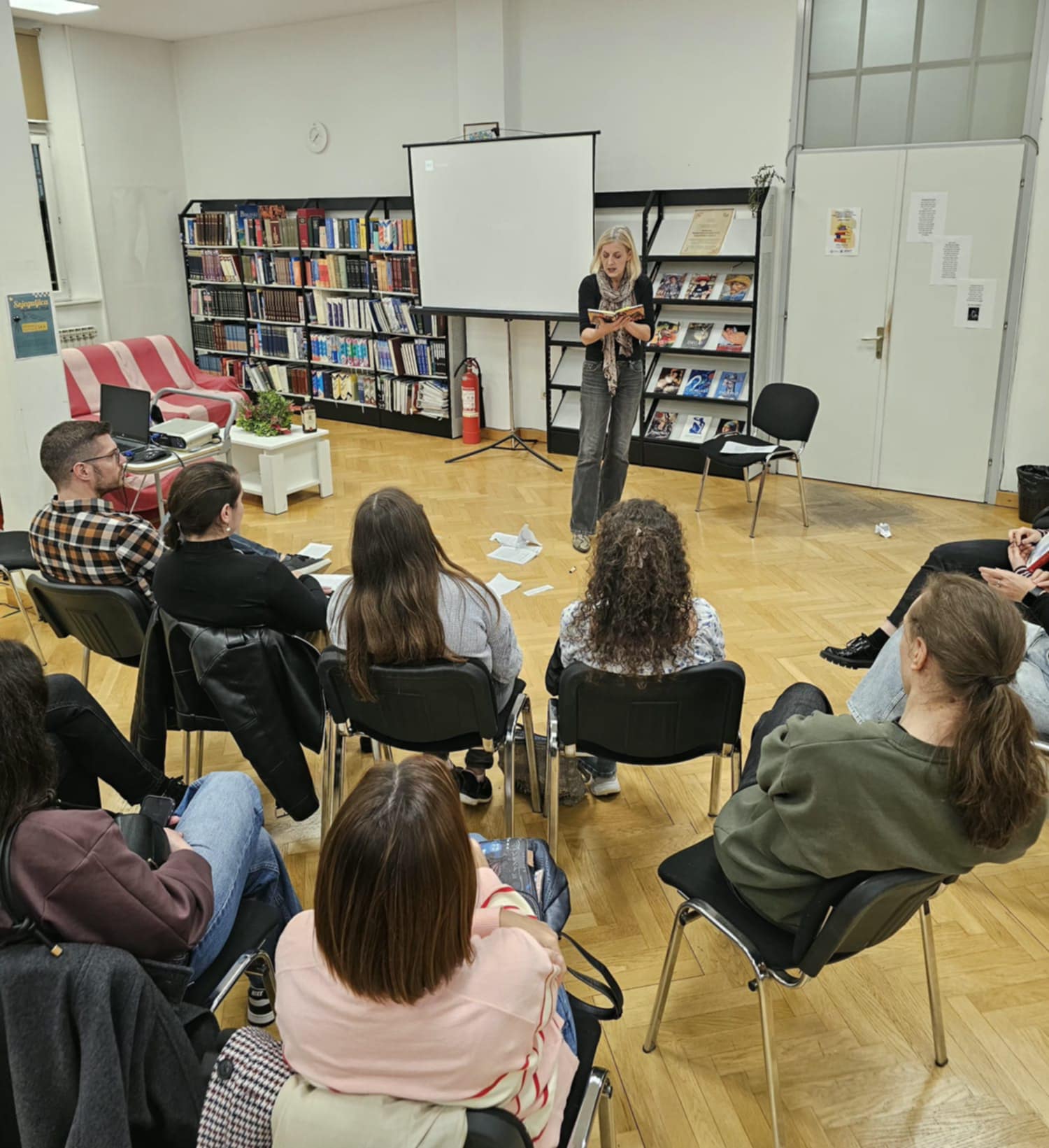 Ostale fotogalerije 3.12.2025.: predavanje "MENTALNO ZDRAVLJE MLADIH U 21. STOLJEĆU"25.11.2025.: otvorenje 32. izložbe "IZDAVAŠTVO NA ZADARSKOM PODRUČJU"31.10.2025.: otvorenje izložbe "SKRIVENA BLAGA"22.10.2025.: posjet veleposlanika Kraljevine Belgije Znanstvenoj knjižnici Sveučilišta u Zadru10.10.2025.: svečano predavanje veleposlanika Republike Italije u Hrvatskoj NJ. E. Paula Trichilla "LETTERATURA E DIPLOMAZIA"30.9.2025.: radionica "GRAFIČKI UREDNICI NA TRAGU RENESANSE"18.07.2025. izložba Aldine: izbor tiskarskih rariteta iz fonda Znanstvene knjižnice Sveučilišta u Zadru10.6.2025.: izložba "ZADARSKE SPORTSKE PRIČE - IZBOR IZ FONDA GRADSKE KNJIŽNICE ZADAR I ZNANSTVENE KNJIŽNICE SVEUČILIŠTA U ZADRU"27.5.2025.: predavanje Filipa Lenića u sklopu izložbe povodom obilježavanja 150 godina od dolaska cara Franje Josipa I. u Zadar i Dalmaciju8.5.2025.: predstavljanje poezije akademika Drage Štambuka7.5.2025.: XIV. DANI SEKSUALNOSTI U ZADRU29.4.2025.: IZLOŽBA I TRIBINA „SA ZADROM U MISLIMA“19.3.2025.: predavanje "POETSKA HIPERBOLA – OD RETORIKE DO INTERPRETACIJE" doc. dr. sc. Tina Lemca10.3.2025.: predstavljanje zbornika radova "MOLIÈRE U HRVATSKOJ KULTURI"17.2.2025.: promocija sveučilišnog udžbenika "BITI ZAPOSLEN RODITELJ DJETETA S TEŠKOĆAMA U RAZVOJU: UMIJEĆE (NE)MOGUĆEG"4.12.2024.: javno predavanje "KRETANJE LJUDI I IDEJA NA DALMATINSKOM VIŠEGRANIČJU: RAZVOJ POSJEDA BORELLI U UVJETIMA BROJNIH IZAZOVA RANOG NOVOG VIJEKA" dr. sc. Dubravke Mlinarić26.11.2024.: predstavljanje knjige i projekta "BAJKA O NOTICAMA"22.11.2024.: otvorenje 31. izložbe "IZDAVAŠTVO NA ZADARSKOM PODRUČJU"20.9.2024.: predstavljanje dva izdanja Desničinih susreta9.7.2024.: otvorenje izložbe "BASTION I BIVŠA CRKVA SV. NIKOLE U SKLOPU ZADARSKOG FORTIFIKACIJSKOG SUSTAVA"23.5.2024.: otvorenje izložbe "NAVIGACIJA POMOĆU SLIKA I ZAPISA – IZLOŽBA STARIH POMORSKIH KARATA I PLOVIDBENIH PRIRUČNIKA"7.5.2024.: otvorenje izložbe "NIKOLA TOMMASEO U FONDU ZNANSTVENE KNJIŽNICE"2.5.2024.: POSJET JAPANSKOG VELEPOSLANIKA23.4.2024.: FESTIVAL ZNANOSTI U ZNANSTVENOJ KNJIŽNICI SVEUČILIŠTA U ZADRU12.4.2024.: predavanje "NOVOSTI IZ TEORIJE POEZIJE" doc. dr. sc. Tina Lemca9.4.2024.: predavanje "DISLEKSIJA I ZVUČNE KNJIGE"22.3.2024.: ZADAR ČITA 2024. - dodjela nagrada20.3.2024.: predstavljanje publikacija nastavnika Odjela za kroatistiku Sveučilišta u Zadru18.3.2024.: izložba i predavanje "KOMPLEKS ŽENSKOG ODGAJALIŠTA SV. DIMITRIJA U ZADRU"12.03.2024.: predavanje "ŠTO KAD DIJETE NE PROGOVORI NA VRIJEME?"06.03.2024.: predavanje "SURADNJA LOGOPEDA I RODITELJA U OTKRIVANJU MOGUĆIH UZROKA REGRESIJE U KOMUNIKACIJSKOM I KAŠNJENJA ILI ZASTOJA U JEZIČNOM RAZVOJU"19.12.2023.: predavanje "BAŠTINA HUMANOSTI U ZADRU: 145 GODINA HRVATSKOGA CRVENOG KRIŽA"19.12.2023.: predavanje "PRIČAMO O ALKOHOLU! I PITAMO VAS: PIJU LI VAŠA DJECA?"15.12.2023.: predstavljanje romana "TONY" Nikole Marinkovića7.12.2023.: predavanje "UMJETNA INTELIGENCIJA (AI) I OBRAZOVANJE: PRIJETNJE, PRILIKE, PERSPEKTIVE"22.11.2023.: otvorenje 30. izložbe "IZDAVAŠTVO NA ZADARSKOM PODRUČJU"14.11.2023.: IZLOŽBA FOTOGRAFIJA O ŠEĆERNOJ BOLESTI10.11.2023.: predavanje "TERAPEUTSKA ULOGA FOTOGRAFIJE U PODRUČJU KULTURE I OBRAZOVANJA"6.11.2023.: PREDSTAVLJANJE PROŠIRENOG IZDANJA I PRETISKA KNJIGE PETRA KUNIČIĆA "HRVATI NA LEDENOM MORU"25.10.2023.: otvorenje izložbe "BAŠTINA HUMANOSTI U ZADRU: 145 GODINA HRVATSKOGA CRVENOG KRIŽA"18.10.2023.: MJESEC HRVATSKE KNJIGE U ZNANSTVENOJ KNJIŽNICI ZADAR28.9.2023.: predstavljanje romana "LA VERDAD VERDADERA" Nikole Marinkovića7.9.2023.: otvorenje izložbe "STARI ATLASI - NOVE PRIČE"18.8.2023.: KULTURNO TURISTIČKA RUTA "ZADAR – LA BELLE ÉPOQUE"19.7.2023.: IZLOŽBA SLIKA "LJETNI REZIME" ANE JAGIĆ5.7.2023.: KOPNENA VRATA U ZADRU6.6.2023.: ZORANIĆEVE "PLANINE" U ZVUKU, SLICI I KNJIŽEVNOJ RIJEČI18.5.2023.: predstavljanje pet zbirki pjesama Jose Štuline5.5.2023.: otvorenje izložbe "MOLIÈRE U FONDU ZNANSTVENE KNJIŽNICE ZADAR"3.5.2023.: predavanje "MEDIJSKA PISMENOST IZMEĐU KRITIČKOG PROMIŠLJANJA I MANIPULACIJA" doc. dr. sc. Nenada Vertovšeka28.4.2023.: predstavljanje knjige doc. dr. sc. Tina Lemca "O PJESMI PJESMOM"27.4.2023.: predavanje izv. prof. dr. sc. Vere Graovac Matassi "POPISI STANOVNIŠTVA - NEKAD I SAD"19.4.2023.: izložba i radionica "OŽIVIMO STARE RECEPTE: KULINARSKA BAŠTINA U RUKAMA MLADIH"20.3.2023.: predavanja "UNIVERZALNOST MOLIEREOVE KOMIKE I NJEZINA HRVATSKA RECEPCIJA" izv. prof. dr. sc. Mirne Sindičić Sabljo i prof. dr. sc. Divne Mrdeže Antonine17.3.2023.: predavanje "predavanje "JEZIK KAO BAŠTINA" dr. sc. Ivane Kurtović Budja24.2.2023.: otvorenje izložbe "SVETCI TITULARI ZADARSKIH CRKAVA" Stipana Kujundžića Šuntića17.2.2023.: predavanja "KUKCI U KUHINJI" I "INDUSTRIJSKI PREHRAMBENI PROIZVODI - ŠTO ZAPRAVO JEDEMO?"8.2.2023.: predstavljanje knjige "ŽIVA FIZIKA" dr. sc. Zdeslava Hrepića2.2.2023.: izlaganje prof. Mirte Tomas "NA PUTU PREMA ŽIVOM SVJETLU (SVJEDOČANSTVO O AFRICI)"16.1.2023.: predavanje dr. sc. Tomislava Sunića "METODA NOVE INKVIZICIJE - LIBERALNI HIGIJENSKI NOVO-GOVOR, NOVA VRSTA POLITIČKE REPRESIJE"22.11.2022.: otvorenje izložbe "IZDAVAŠTVO NA ZADARSKOM PODRUČJU"11.11.2022.: DAN GRADA - ZADARSKA TURISTIČKA RUTA NADAHNUTA BAŠTINOM ZNANSTVENE KNJIŽNICE: „ZADAR – LE BELLE EPOQUE TOUR“11.11.2022.: IZLOŽBA 15. MEĐUNARODNE LIKOVNE KOLONIJE 2022.4.11.2022.: predstavljanje zbirke pjesama "DIVLJA NJEŽNOST" Franka Sorića26.10.2022.: otvorenje izložbe "SPOMEN NA PRVU SAMOSTALNU IZLOŽBU VLAHE BUKOVCA U ZADRU - GRADSKA LOŽA, 26. LISTOPADA 1884."3.10.2022.: otvorenje izložbe knjiga Tomislava Marijana Bilosnića2.8.2022.: otvorenje izložbe "OLUJA '95."1.7.2022.: otvorenje izložbe "DALMACIJA U MOM OKU"3.6.2022.: otvorenje izložbe i predavanja "OSTAVŠTINA ANTE KUZMANIĆA"25.4.2022.: predstavljanje knjige "STRATEŠKO KOMUNICIRANJE DRŽAVA" Bože Skoke20.4.2022.: manifestacija "I ZADAR JE MARULIĆEV"2.4.2022.: i