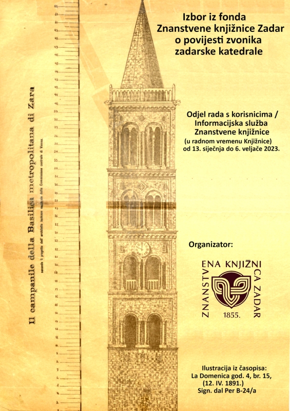 Ususret obilježavanju blagdana svete Stošije, (koji se obilježava 15. siječnja) zaštitnice grada Zadra i Zadarske nadbiskupije u Znanstvenoj knjižnici Zadar postavljen je Izbor iz fonda Knjižnice o povijesti zvonika zadarske katedrale. Izbor iz fonda možete pogledati od 13. siječnja u Odjelu rada s korisnicima / Informacijskoj službi Znanstvene knjižnice u radnom vremenu Knjižnice od 7:00 do 21:00 i subotom od 7:00 do 13:00 sati.