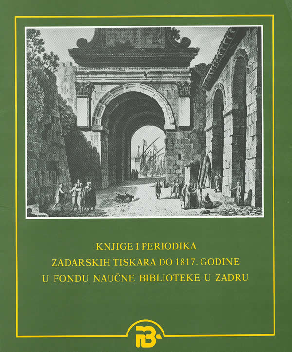 Katalog knjiga i periodike zadarskih tiskara do 1817. godine u fondu Naučne biblioteke u Zadru / [katalog priredili Pavao Galić, Nikola Lukačević ; kataložna obrada Ljiljana Artić, Antica Vojvodić ; fotografije Antun Travirka]. – 1988.