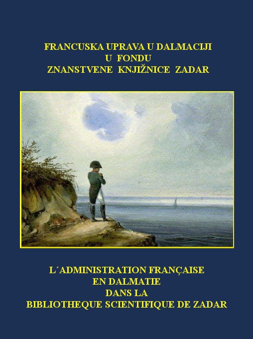 Francuska uprava u Dalmaciji u fondu Znanstvene knjižnice Zadar : katalog = L'administration francaise en Dalmatie dans la Bibliotheque scientifique de Zadar : catalogue / [katalog uredila, editrice Milenka Bukvić ; predgovor, preface Josip Vrandečić ; na francuski prevela, traduit en francais par Tea Eschebach]. – 2011.
