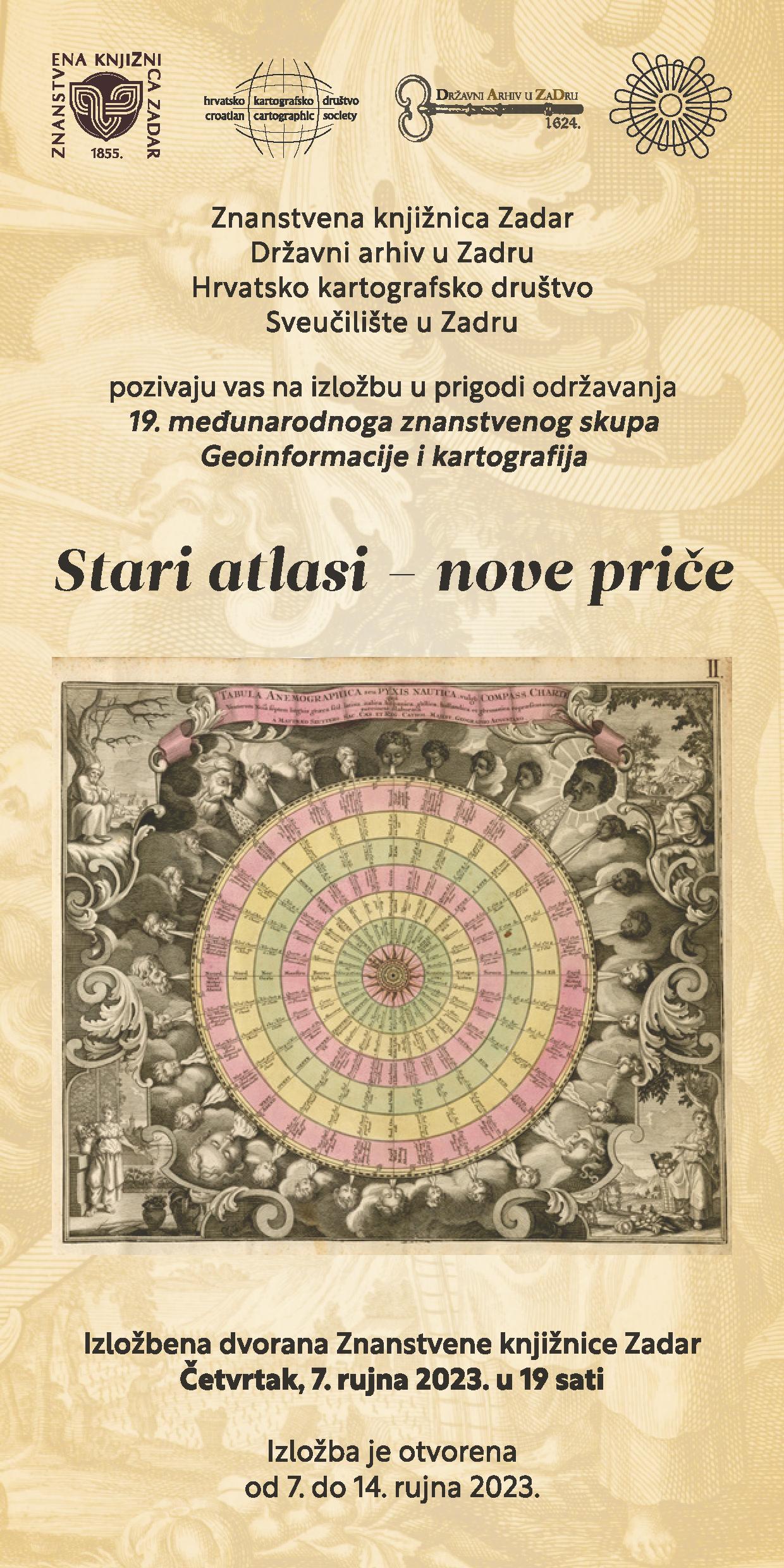 Izložba: Stari atlasi – nove priče, Izložbena dvorana Znanstvene knjižnice Zadar, Zadar, 7. rujna – 14. rujna 2023.