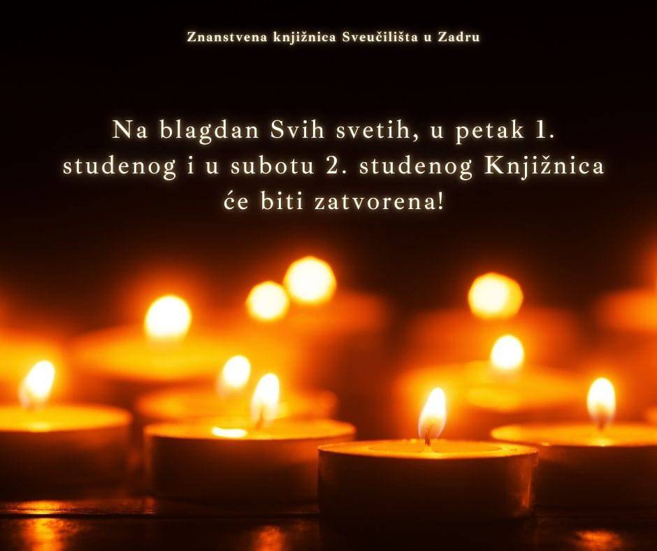na Blagdan Svih svetih, u petak 1. studenog i u subotu 2. studenog Knjižnica će biti zatvorena.
