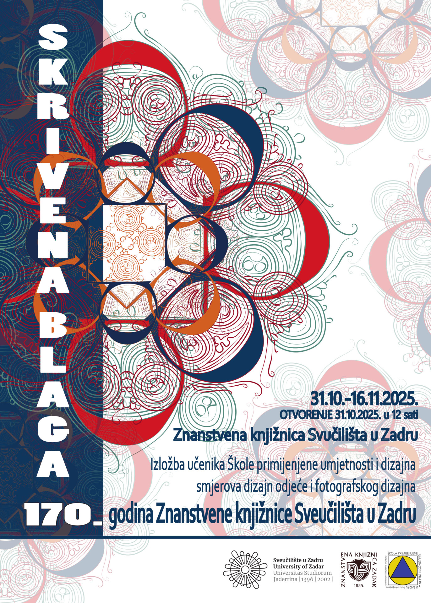 U povodu obilježavanja 170. obljetnice Znanstvene knjižnice Sveučilišta u Zadru, učenici Škole primijenjene umjetnosti i dizajna Zadar realizirali su projekt “Skrivena blaga”, koji spaja istraživanje kulturne baštine i suvremeni umjetnički izričaj mladih dizajnera.