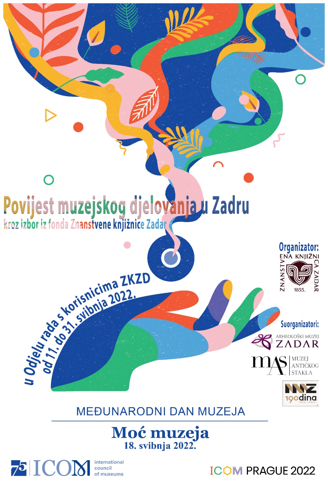 Ususret Međunarodnom danu muzeja, 18. svibnja Znanstvena knjižnica organizira izbor iz fonda s kojim želi javnosti približiti povijest muzejskog djelovanja u Zadru kroz knjige i članke koje čuva u svom fondu. U suradnji sa zadarskim muzejima izložili smo osim knjižnične građe iz fonda Knjižnice i muzejske suvenire da se javnosti približi rad muzeja. Na izložbi je predstavljena isključivo građa koja se tiče službeno osnovanih muzeja, a ne muzejskih zbirki i stalnih izložbi koje nemaju status muzeja.