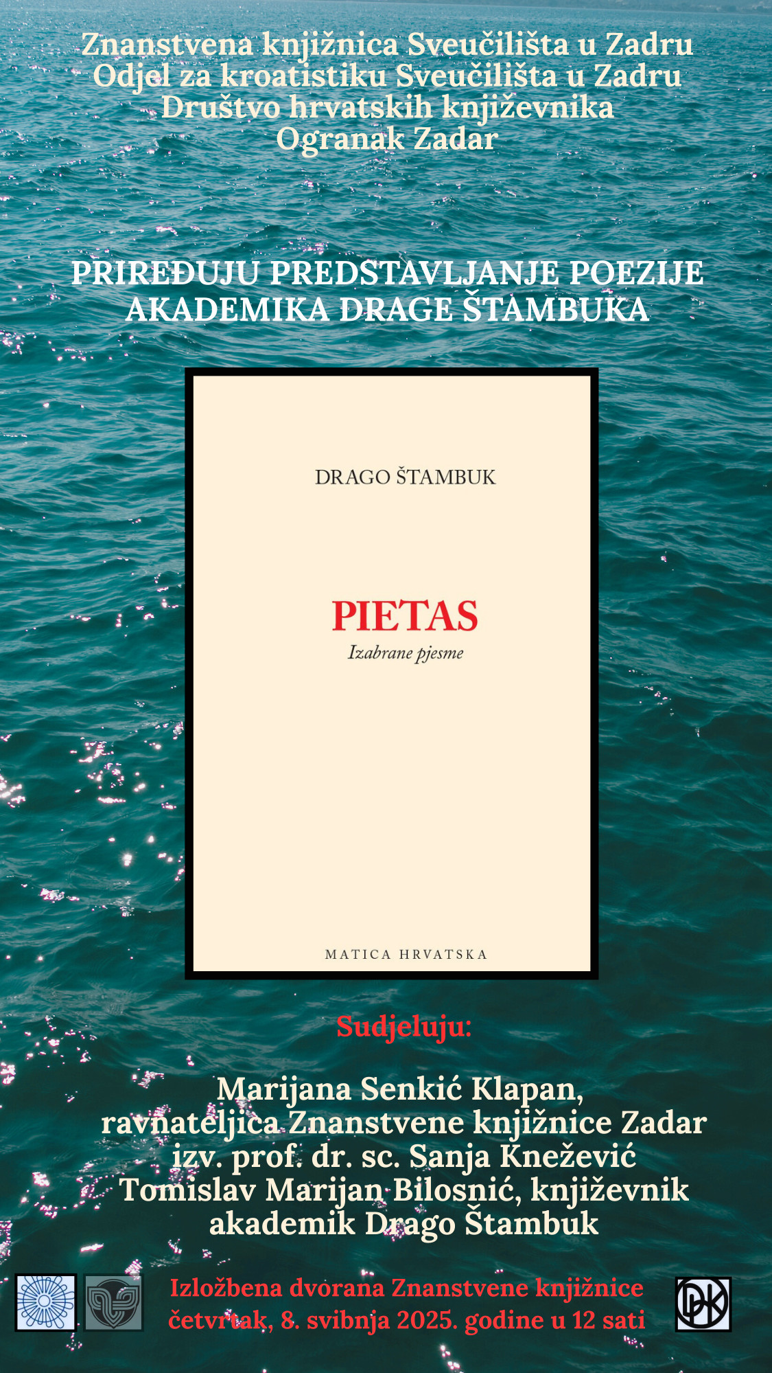 U četvrtak 8. svibnja 2025. s početkom u 12 sati u Izložbenoj dvorani Znanstvene knjižnice Sveučilišta u Zadru održat će se predstavljanje poezije akademika Drage Štambuka.
