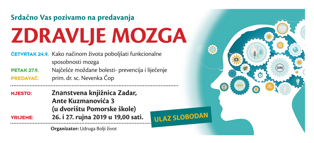 U četvrtak i petak, 26. i 27. rujna u 19,00 sati predavanja ZDRAVLJE MOZGA