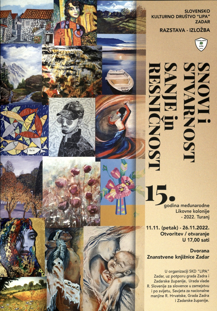 U organizaciji Udruge Lipa Zadar u Izložbenoj dvorani Znanstvene knjižnice Zadar u petak 11. studenog, s početkom u 17 sati otvara se izložba 15. međunarodne likovne kolonije 2022.